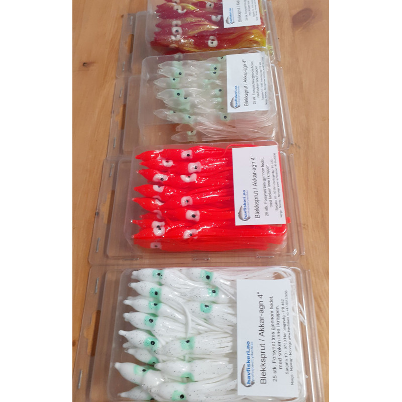 Kunstig akkaragn for fiske etter sei, lysing, havabbor og andre jagende fisk. Kan også brukes til hekler og stangfiske. Det klippes et hull på toppen av hodet og forsynet tres inn, til kroken er inne i hodet. Så festes enden av forsynet til lina.